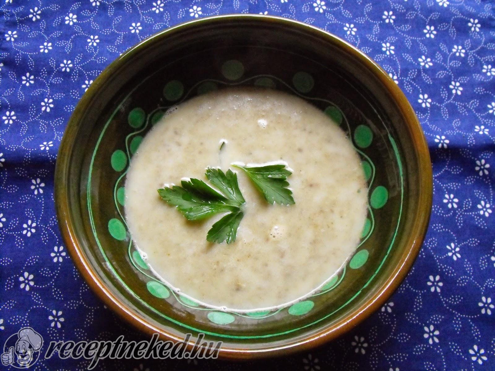 Puhára pároljuk, forrón átpasszírozzuk, majd a tejszínnel simára keverjük. Apróra vágott petrezselyemmel dúsítjuk.