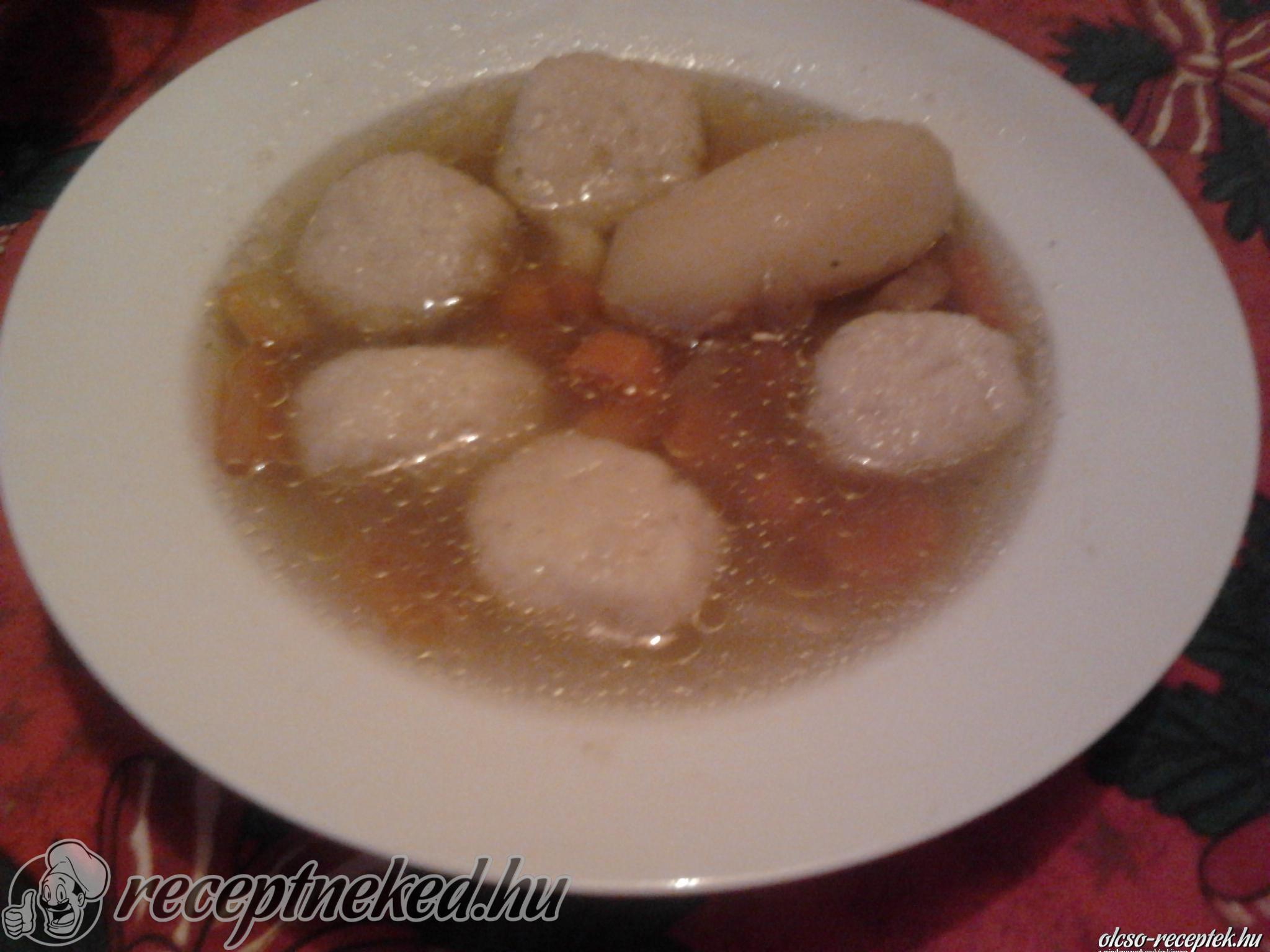 Ezután kiskanállal kiszaggatjuk, kézzel megformázzuk, és a forró levesbe tesszük. Egyet félbevágunk, hogy megbizonyosodjunk róla, átfőtt-e. Ha elkészült, tálalhatjuk.