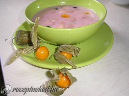 Csipet sóval is ízesítem, és a narancs héját belereszelem. A földicseresznyét alaposan megmosom, és azt is a levesbe teszem. Az alma fő meg előbb, a többi gyümölcsnek nem kell szétfőni.