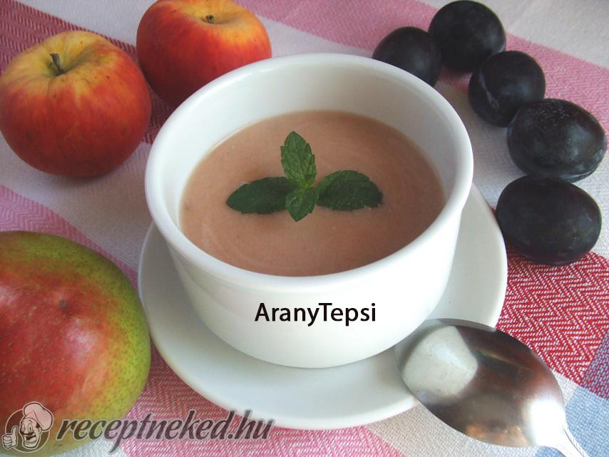 [box style=”info”]Olyan sok gyümölcsöt kaptunk, hogy nem bírtuk mind megenni, és kezdtek veszíteni a frissességükből. Így ezeket felhasználva készült el ez a finom kis krémleves. Jól behűtve kellemes frissítő volt a nagy melegben.[/box]