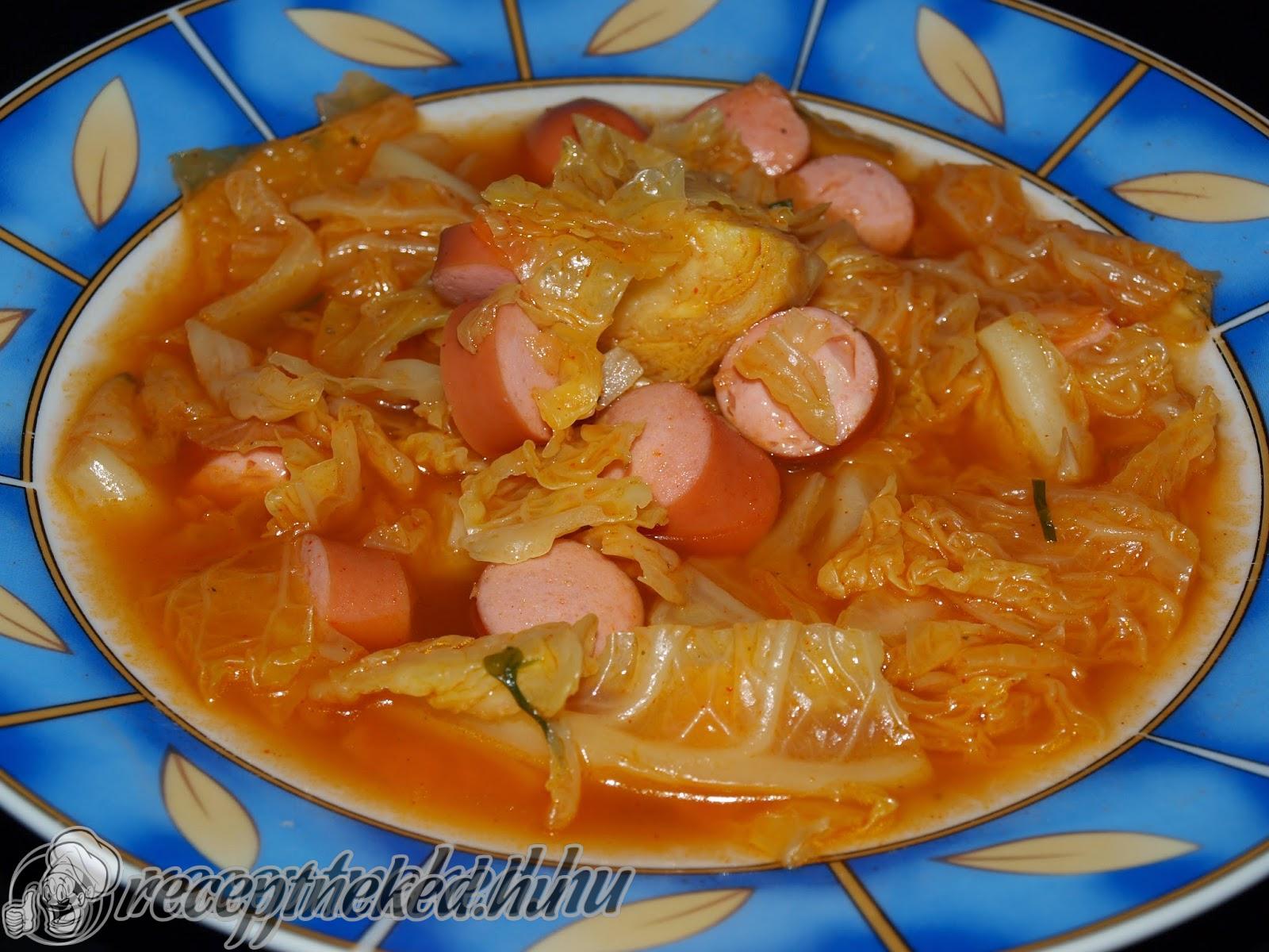 Közben a virslit karikára vágjuk és kevés zsiradékon megpirítjuk. A leveshez adjuk és együtt főzzük még kb 5 percig. Ha nagyon sűrűnek találjuk a levest, akkor adjunk még hozzá kevés vizet. Természetesen kóstoljuk meg és ha szükséges, akkor után ízesítsük sóval, borssal és majoránnával ízlésünknek megfelelően.