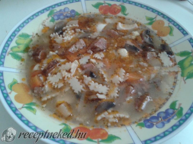- 40 dkg főtt sonka (finomabb íze van a levesnek, ha füstölt is)