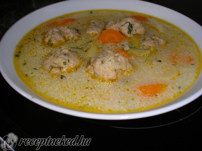 Amikor felforr, kissé takarékra vesszük, a húsból gombócokat formázunk, majd a levesbe engedjük óvatosan. Szép lassan főzzük addig, míg meg nem puhulnak a benne lévő anyagok.