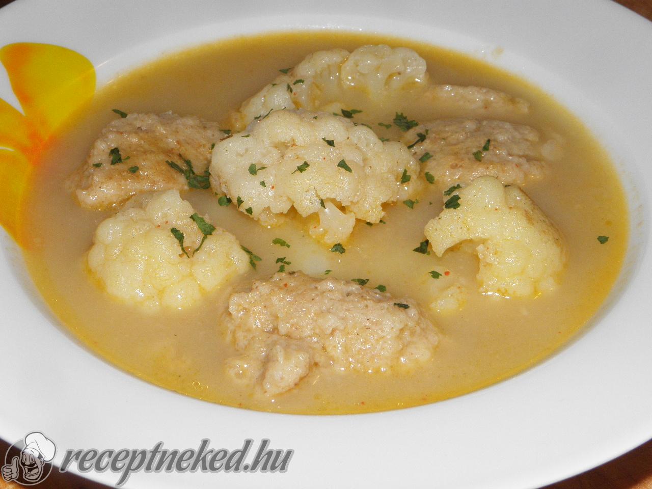 A galuska hozzávalóiból közepes keménységű tésztát keverünk, beleszaggatjuk a forrásban lévő levesbe. Fedő alatt 10 percig főzzük, majd visszatesszük bele a karfiolrózsákat, és tálaljuk.