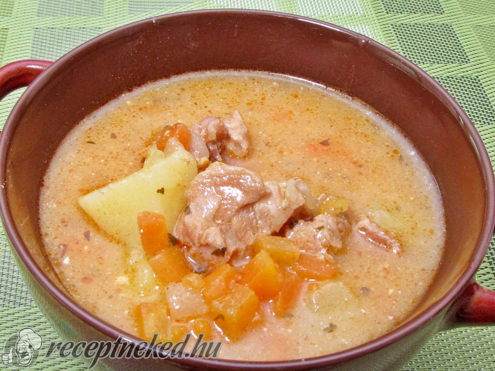 Mivel pulykahúst használtunk, nem kellett a hús puhulására annyit várni, mint sertéslapocka esetében, de abból is készülhet a raguleves.
