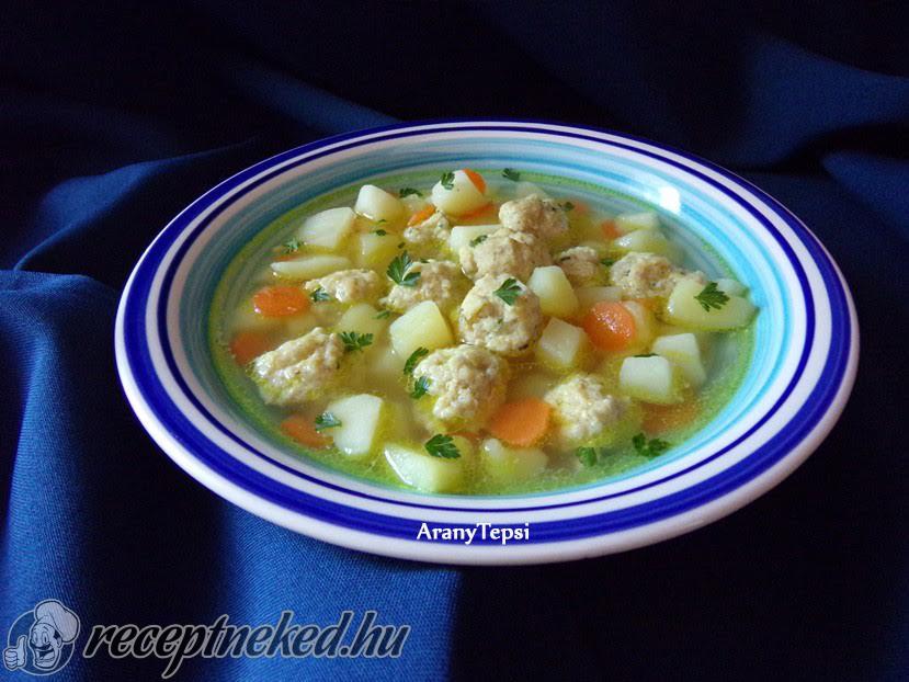 [box style=”info”]Roppant egyszerű leves egy kevés zöldséggel és némi apró húsgolyóval. Egész hamar elkészül, hisz a gombócok is gyorsan megfőnek. Akár kezdő háziasszonyoknak is jó szívvel ajánlom.[/box]