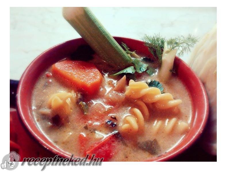 A lényeg, hogy a zöldségek ne puhuljanak meg, kicsit ropogjanak, és ne főzzük szét a tésztát.