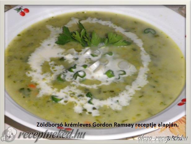 Szűrőkanállal kevés borsót kiveszünk a tálaláshoz, a töbit botmixerrel vagy tumixszal pürésítjük, majd sóval esetleg cayenne borssal ízesítjük.