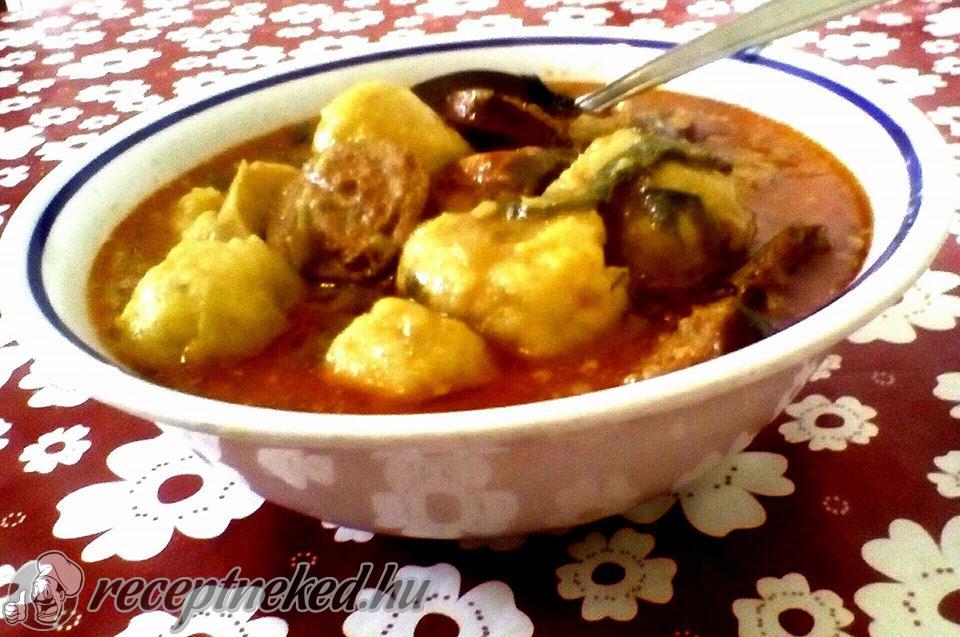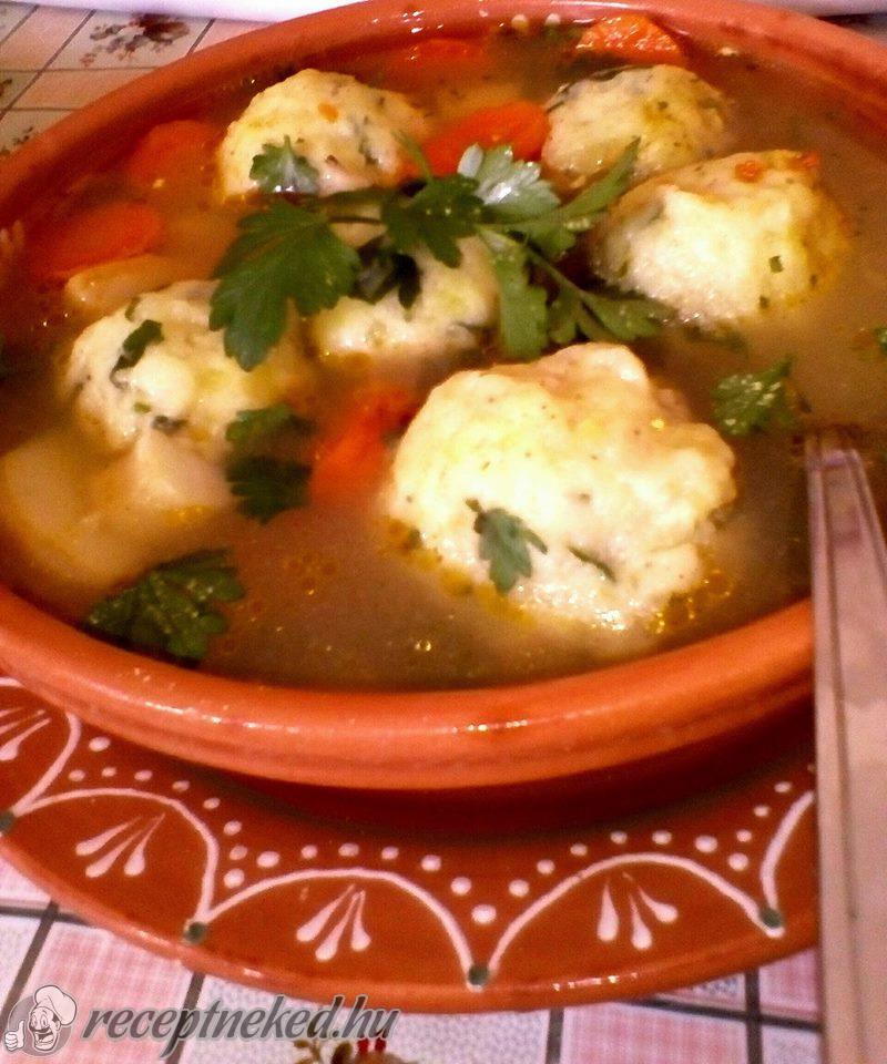 Keverjük össze és kis gombócokat formázzunk belőle. Amikor már majdnem kész a levesünk, dobjuk bele a gombócokat és főzzük készre.