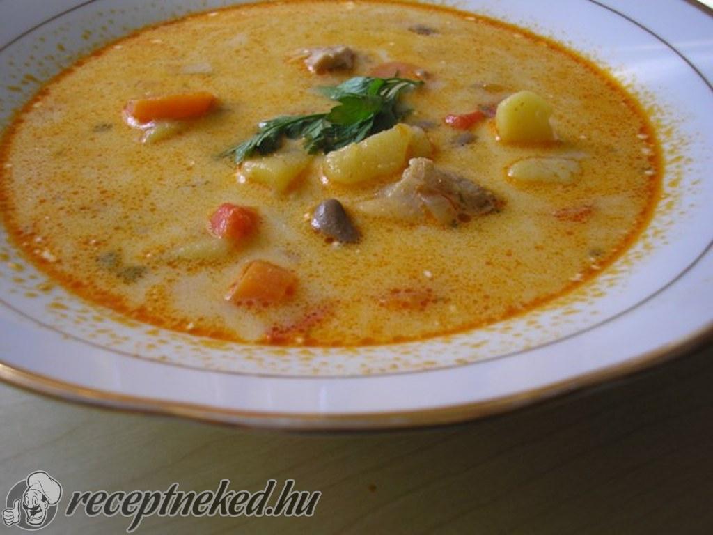 Hozzáadjuk a húshoz a krumplit, babot, répát, majd felöntjük annyi lével, amennyi levesre szükségünk van (Vigyázzunk, ne hígítsuk túl) Jól összeforraljuk, és tálalás előtt elkeverjük benne a főzőlével elkevert tejfölt.