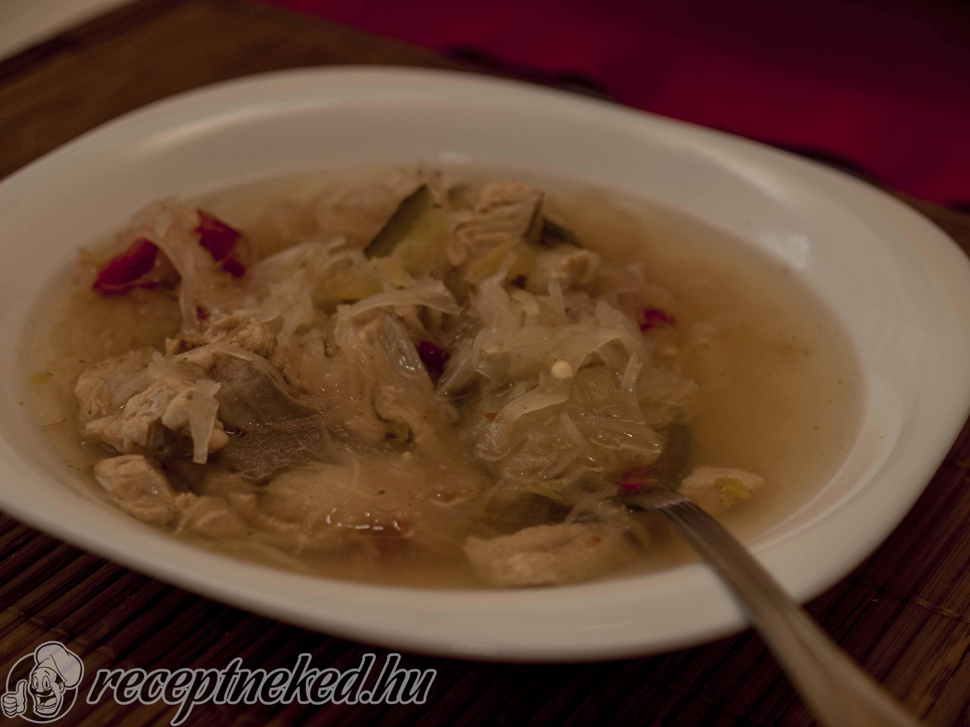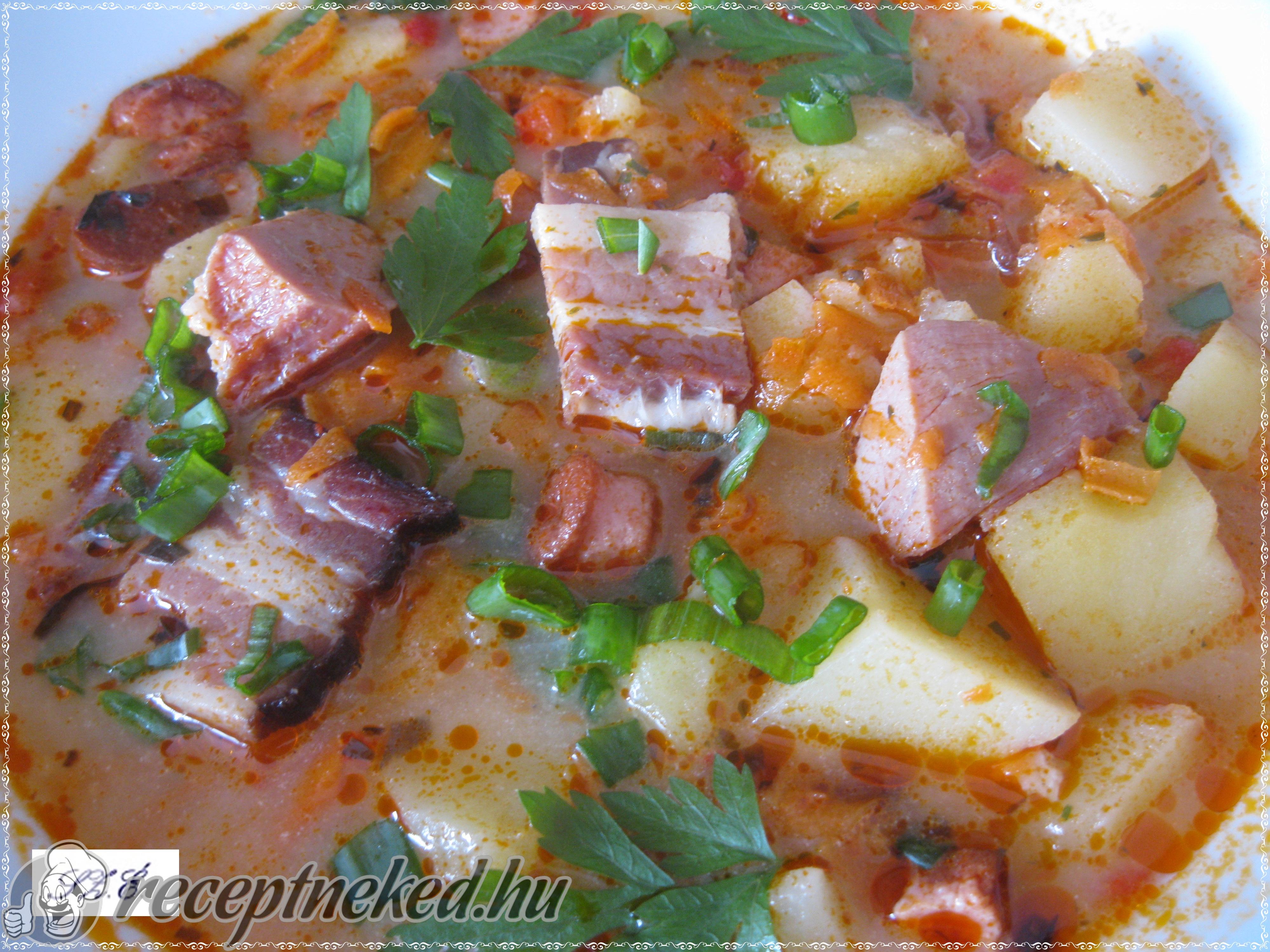 Jól kiforraljuk, majd elzárjuk alatta a lángot. Megszórjuk apróra vágott petrezselyemmel és ha szükség még utánízesítünk.