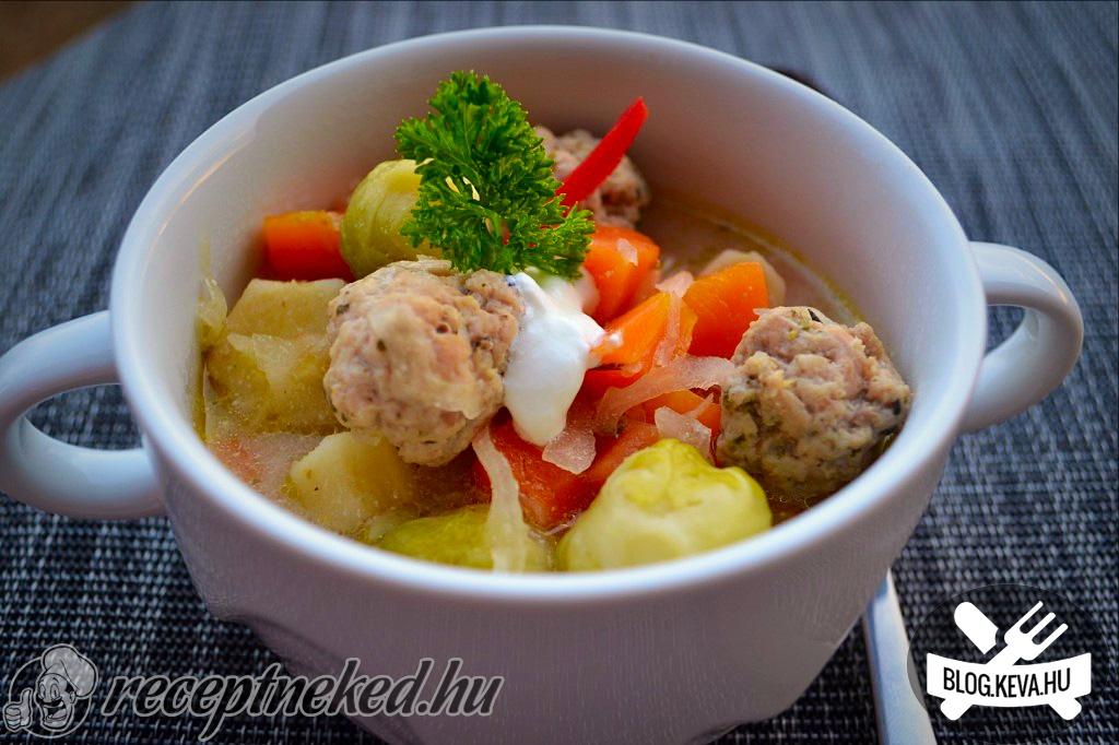 Felöntjük a levest kb 1,5-2 l vízzel, hozzáadjuk a dinsztelt zöldségeket, ízlés szerint sózzuk és borsozzuk, majd készre főzzük.