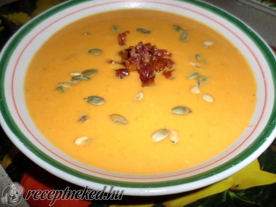 Botmixerrel összemixeljük, citromot nyomunk bele és tetszés szerint pirított, tört tökmaggal, petrezselyemzölddel díszítve tálaljuk.