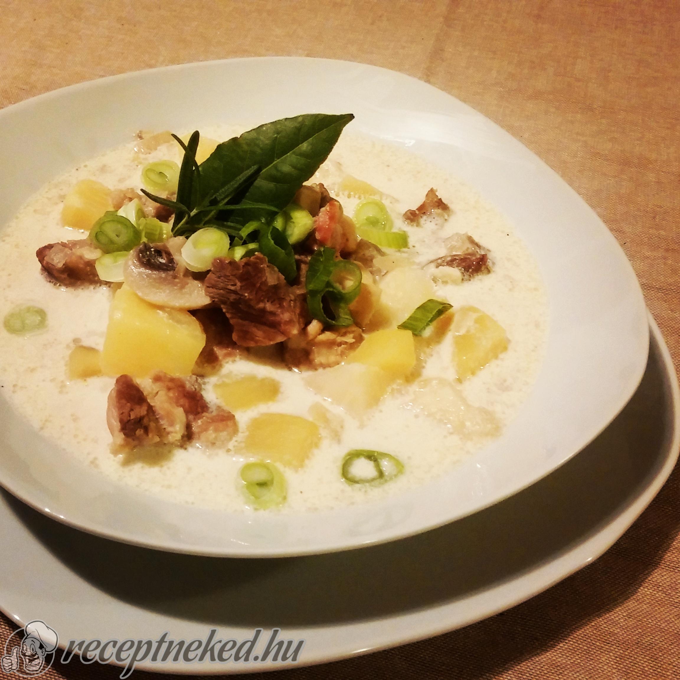Miután felforrt a leves, fedő alatt takaréklángon puhára főzzük. Időnként kevergetjük és kóstolunk is a sóssága miatt.