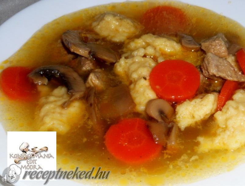 Végül mielőtt elkészülne az étel beleszórjuk a tésztát, 3-4 percig még forraljuk, majd elzárjuk a lángot. Lefedjük és 8-10 perc pihentetés után még forrón ízlés szerint chilivel és borssal tálaljuk.