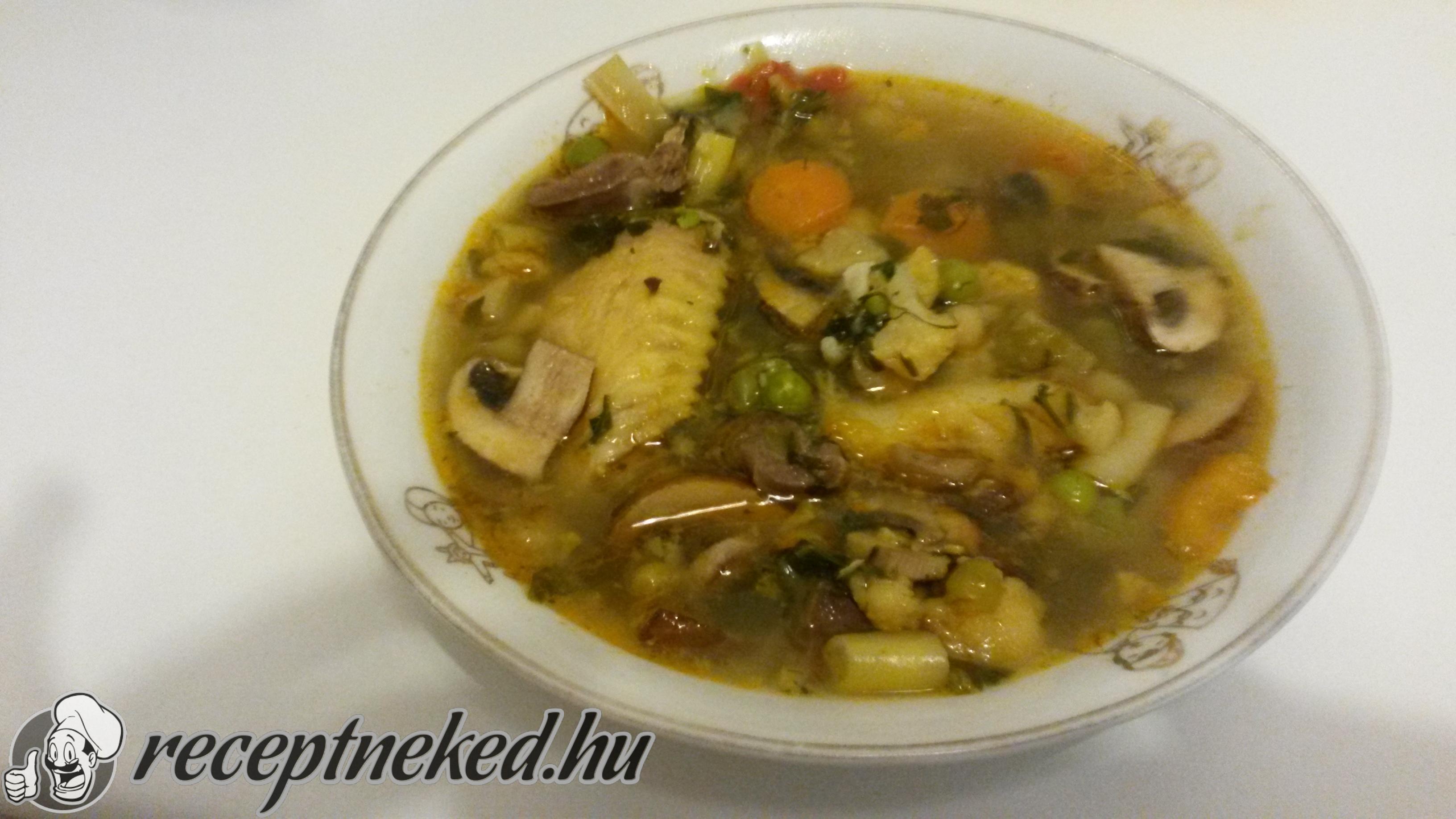 A zúzát és szívet apró darabokra vágjuk a szárnyat háromfelé. A zöldségféléket is kockára vágjuk.