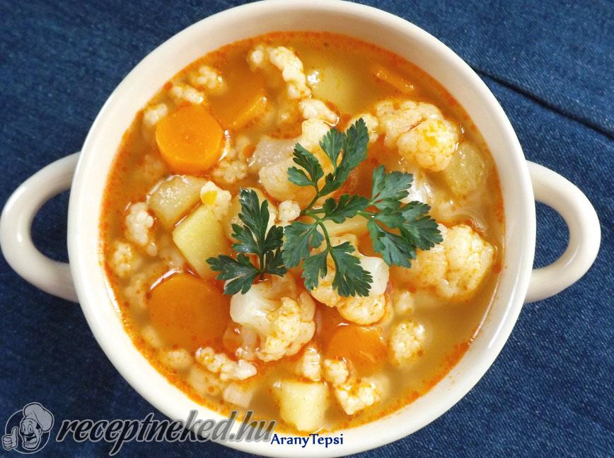 Minden zöldséget alaposan megtisztítunk. A karfiolt apró rózsáira szedjük, a sárgarépát vékony karikára vágjuk, a krumplit apróra kockázzuk.