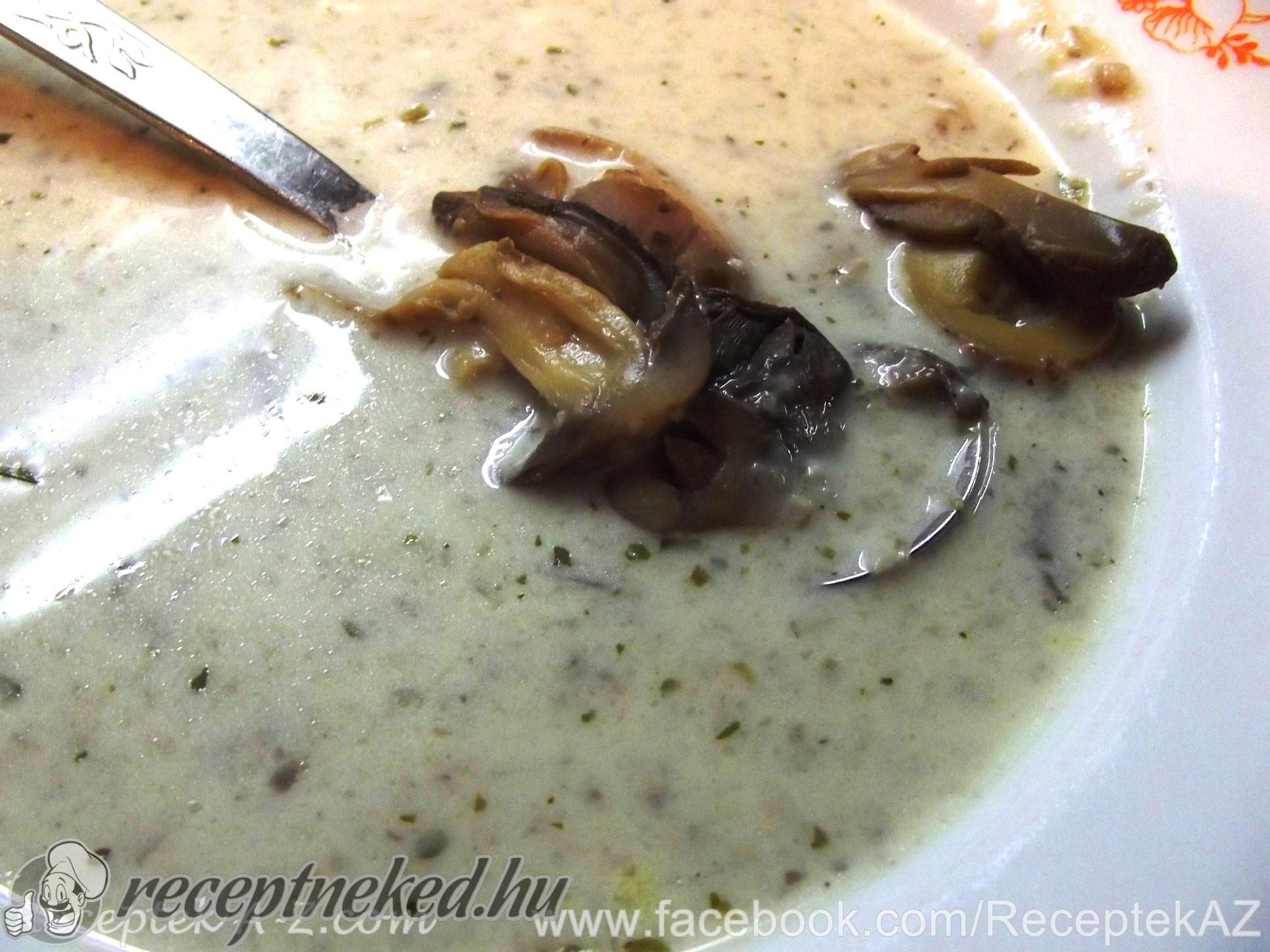 Tálaláskor a pirított gombával díszítjük, és friss kenyeret adunk hozzá.