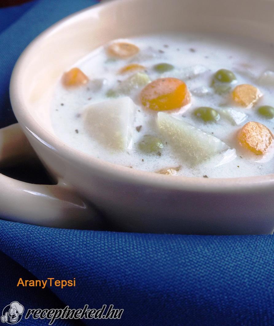 A lisztet csomómentesre keverjük a tejföllel, a meleg levesből mert pár evőkanálnyi forró vízzel felhígítjuk, majd ha már minden zöldség puha, folyamatos kevergetés mellett a levesbe csorgatjuk. Beleszórjuk a morzsolt tárkonyt. Pár perc után elzárjuk.