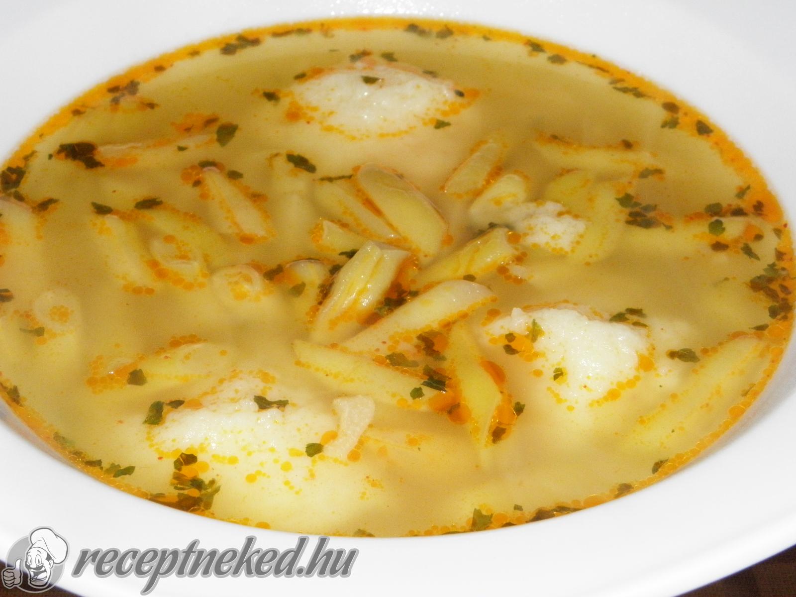A tojásból, a vajból és a réteslisztből pici sóval közepes lágyságú tésztát keverek, kiskanállal beleszaggatom a levesbe, és 10 perc alatt készre megfőzöm.