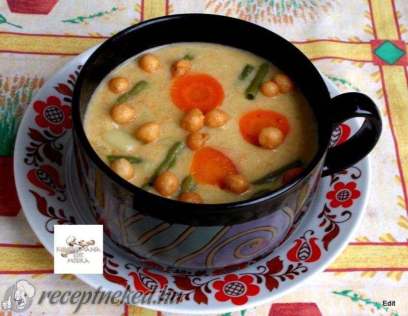 A levest a maradék zöldséggel és levesgyönggyel tálaljuk.