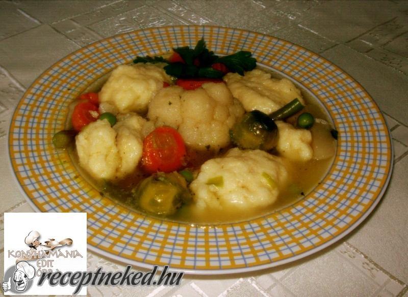 Néhány percig hagyjuk pihenni, majd amikor a zöldségek megpuhulnak, teáskanállal a levesbe szaggatjuk.