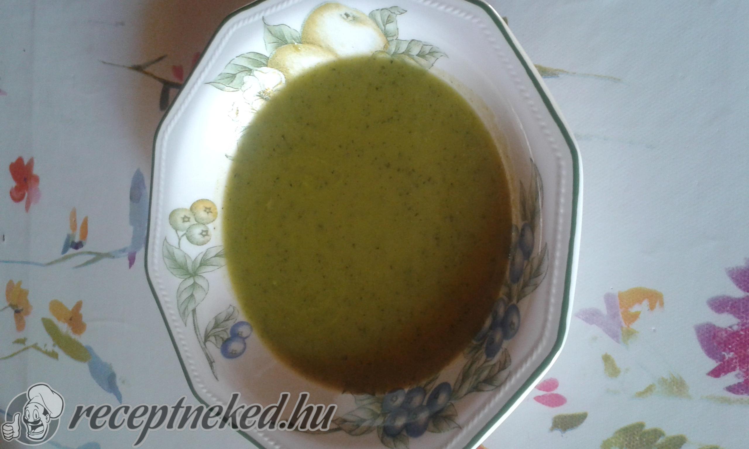 [box style=”info”]A zöldségek mennyiségétől függően adok hozzá vizet. Általában abból főzöm, amit éppen otthon találok, ha csak zeller van és krumpli akkor abból, a lényeg a zöld levél (ami lehet petrezselyem is) és a nyers fokhagyma, mert ezek adják meg az ízét![/box]