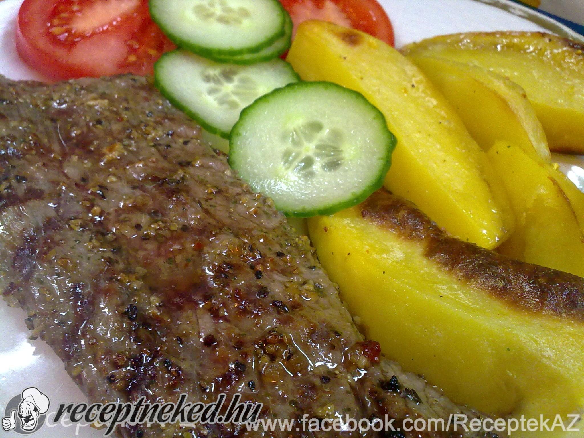 A húst felszeleteljük megfűszerezzük, majd állni hagyjuk kb. 4-5 órán át. A grillezőt felforrósítjuk. Ha már elég forró, kevés olajjal átkenjük a grillezőt ráfektetjük a húst, majd minden oldalán Kb.3-3 perc alatt készre sütjük.