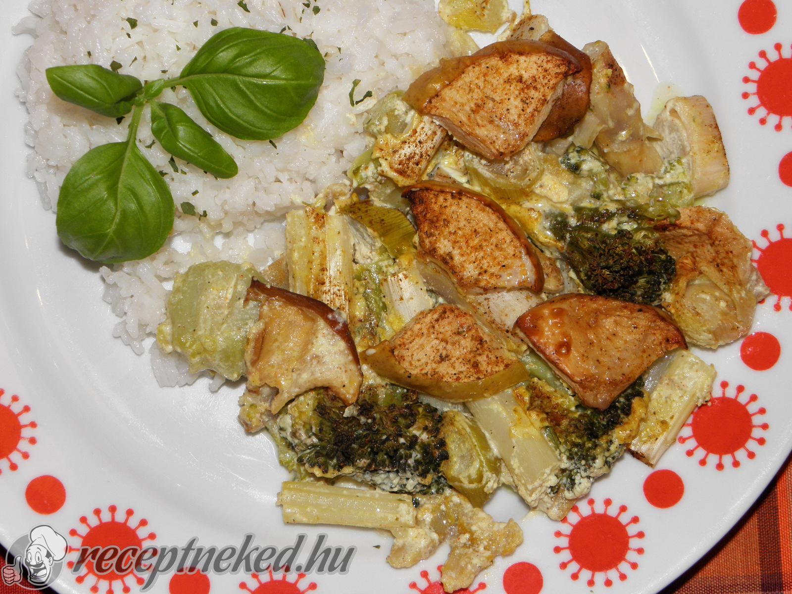 Tésztával vagy rizzsel, szezámmaggal megszórva tálaljuk.