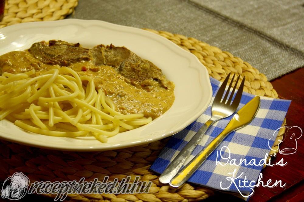 Már csak a húst kell szeletelni mártással nyakon önteni végül csőtésztával vagy zsemlegombóccal tálalni.