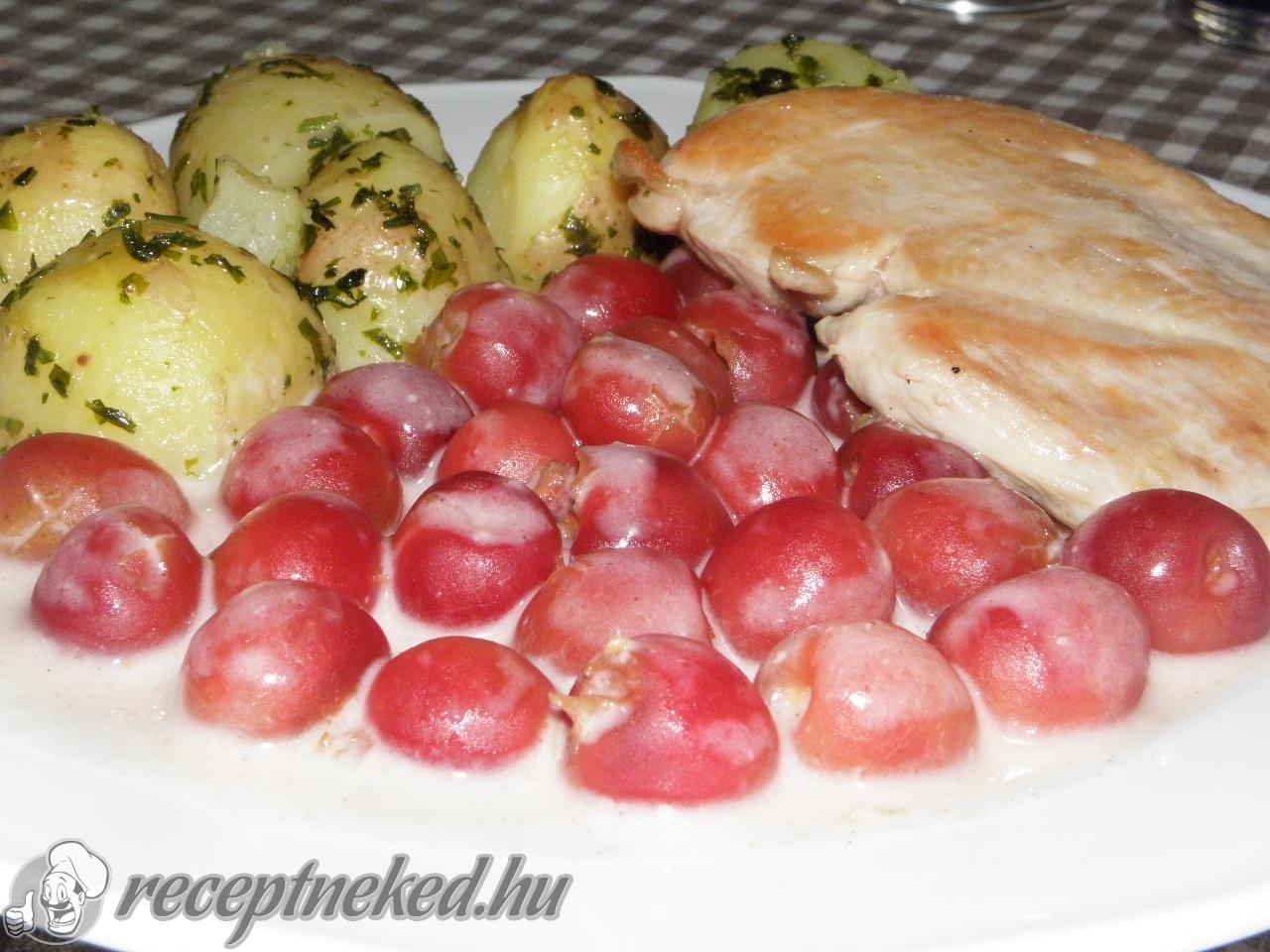 Petrezselymes krumplival és főtt, vagy sült hússal tálaljuk.