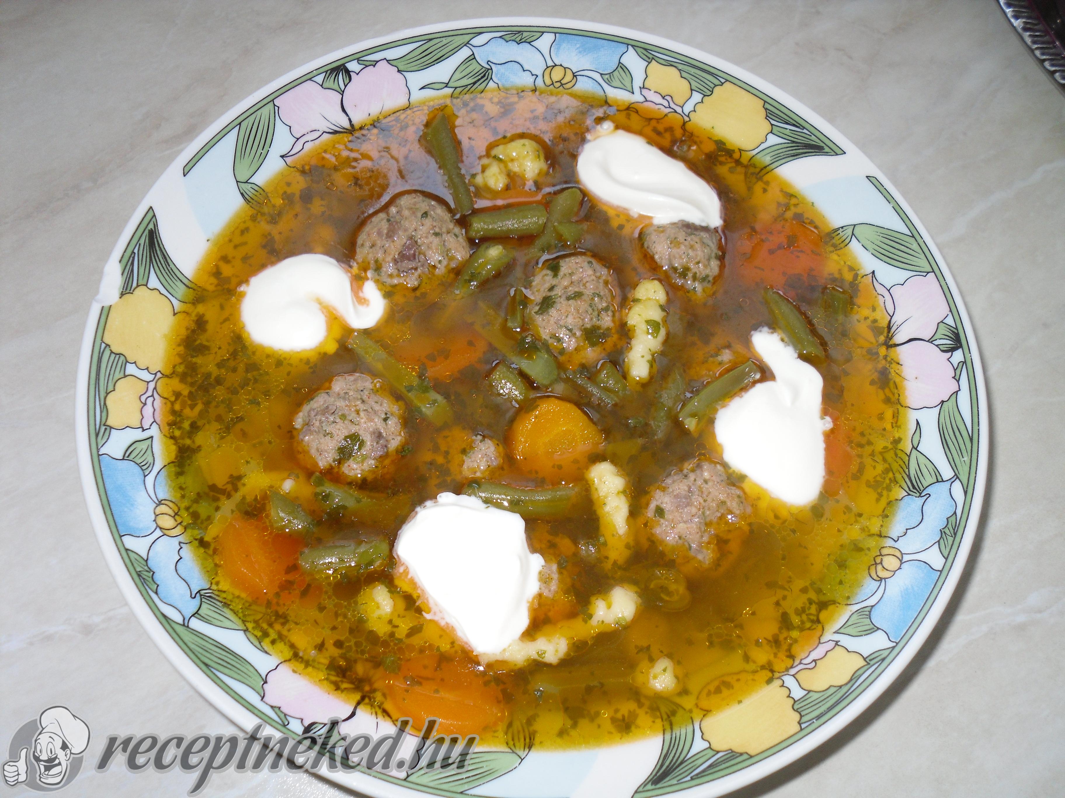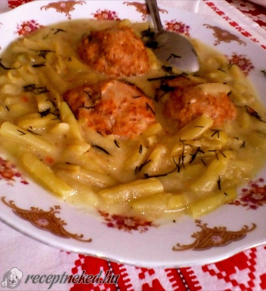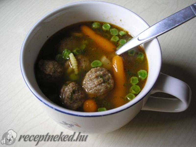 A krumplit és a répát megtisztítjuk, egészben vagy darabolva feltesszük főni. Amikor forró a víz, beletesszük a húsgombócokat is és mindent puhára főzünk.