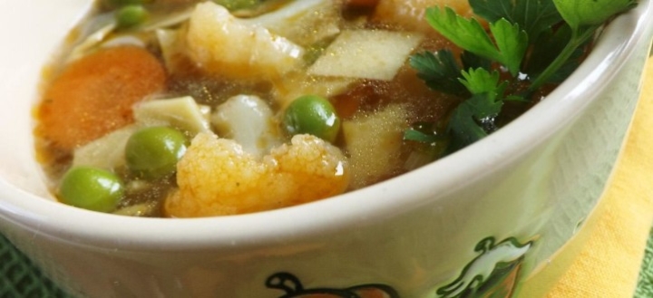Leves: Borsóleves karfiollal, házi tésztával