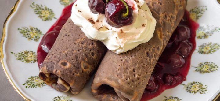 Desszert: Feketeerdő palacsinta meggymártással
