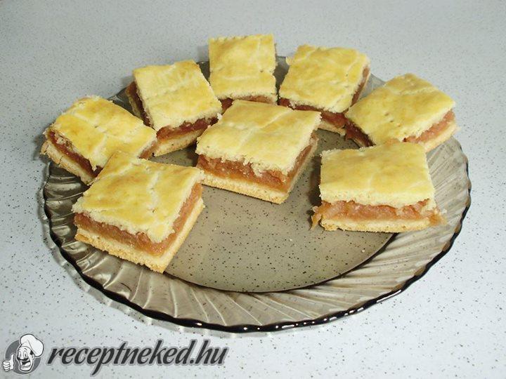 A lisztben elmorzsoljuk a vajat, majd a többi hozzávalóval tésztát gyúrúnk belőle, majd két felé vesszük. Az egyik felét elnyújtjuk és a sütőpapírral bélelt nagy gáztepsibe tesszük, erre rakjuk a kézzel kinyomkodott reszelt almát, majd rányújtjuk a tészta másik felét is. Tetejét lekenjük egy felvert tojással, majd megszurkáljuk egy villával és megsütjük. (Én 180 fokon sütöttem, légkeveréssel.)