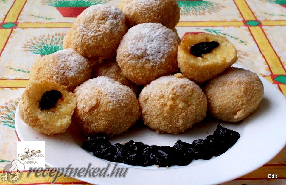 1 teáskanál étolajat tartalmazó, forrásban lévő vízben főzzük ki a gombócokat, majd a pirított zsemlemorzsába forgatjuk, fahéjas porcukorral vagy felmelegített, kis rummal ízesített szilvalekvárral kínáljuk.