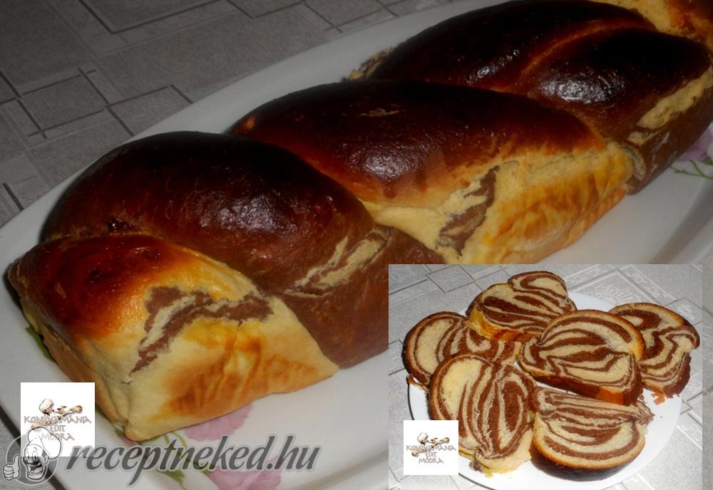 A két csíkot összefonjuk, majd koszorú alakúra hajlítjuk és a végeit összecsípjük. Egy nagy tepsire (nekem sütés küzben kissé szétnyílt, aki nem szeretné, hogy ez történjen tegye egy kb 30 cm átmérőjű tortaformába, lábasba vagy sütőbe tehető serpenyőbe).