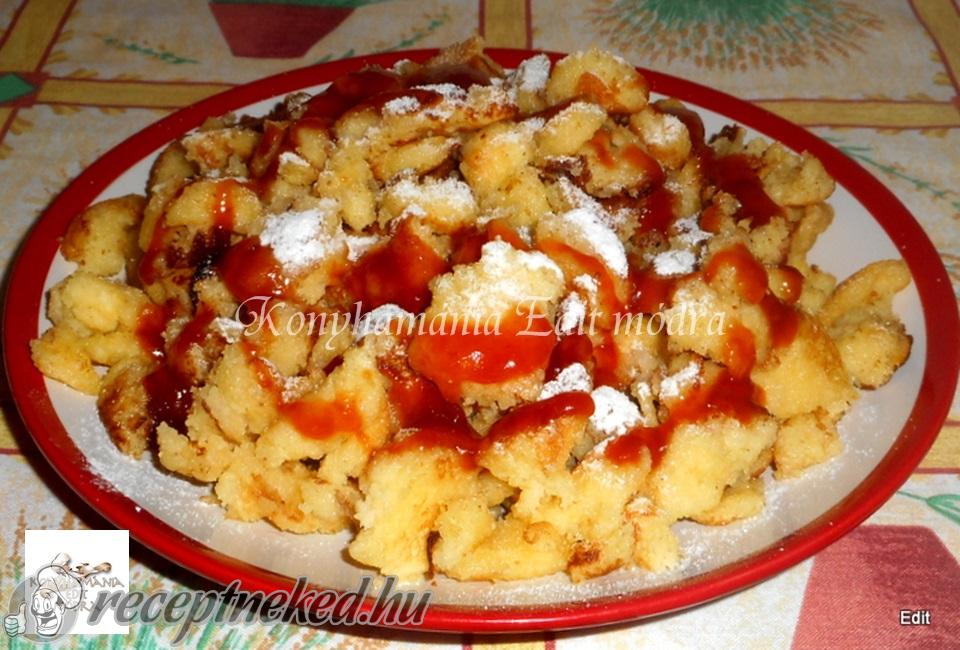 Porcukorral megszórva, baracklekvárral fogyasztottuk.