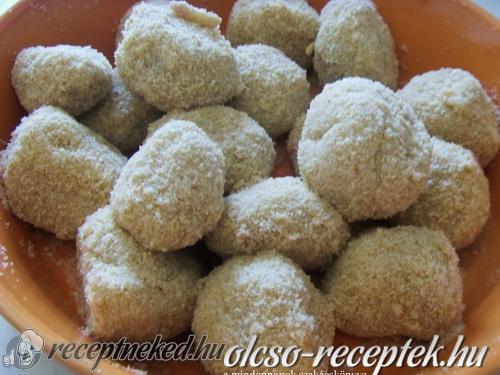 Ha elkészültünk a golyókkal, lobogó, bő forró vízbe tesszük őket. Kb. 5-10 percig főzzük, vigyázva, hogy a kakaó ne folyjon ki. Amikor kifőttek, pirított zsemlemorzsába hempergetjük őket, és porcukorral meghintve tálaljuk.