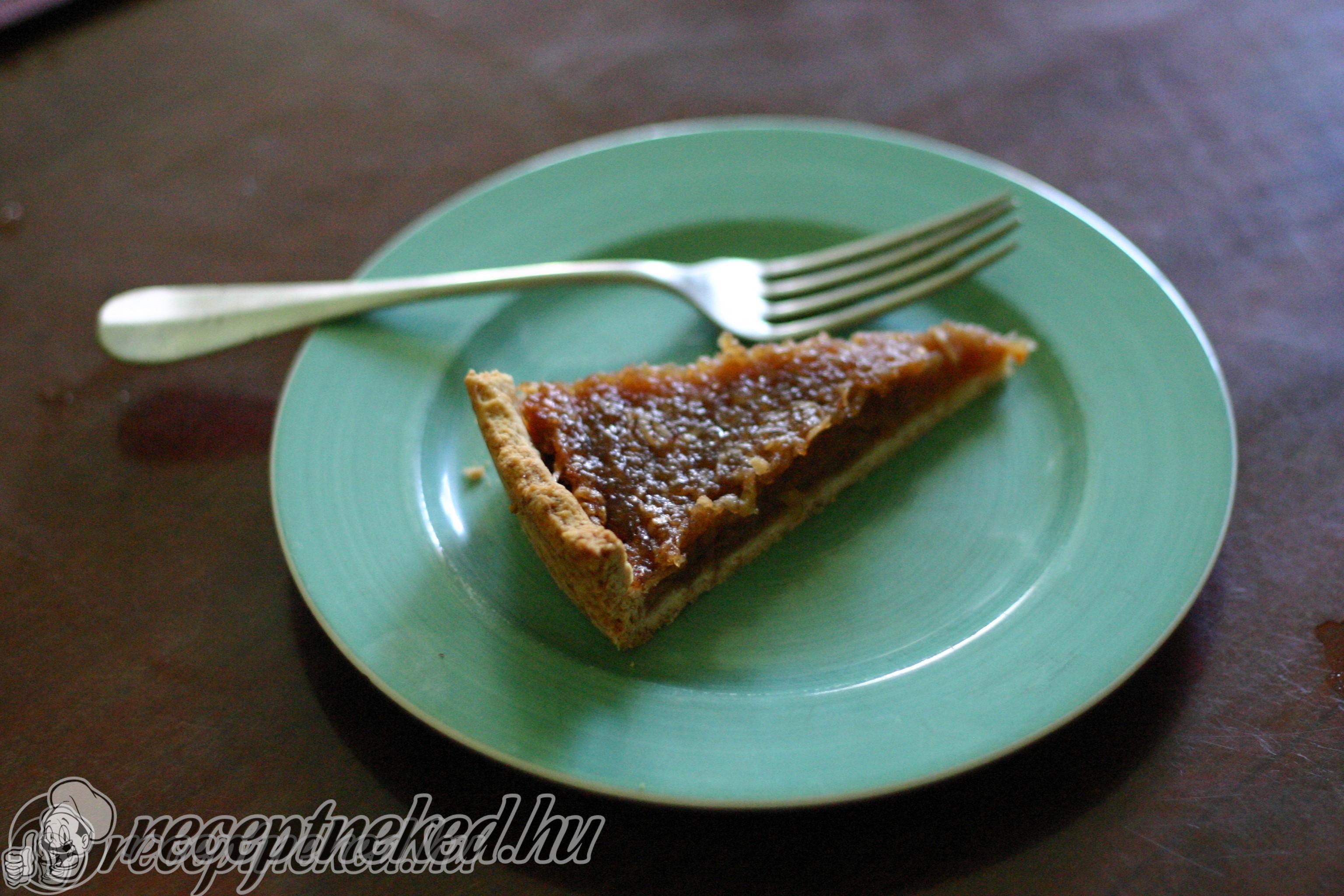 Egy 30 cm átmérőjű lecsatolható tortaformát kibélelünk sütőpapírral. A tészta 2/3 részét levágjuk és lisztezett felületen 4 mm vastagra kisodorjuk és kibéleljük vele a tortaformát úgy, hogy magasan pereme is legyen.