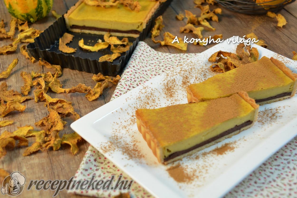 A tészta 1/3-át szintén kisodorjuk és ráhelyezzük a töltelék tetejére. A széleit körben méretre vágjuk, hogy a két tésztaréteg fedje egymást.