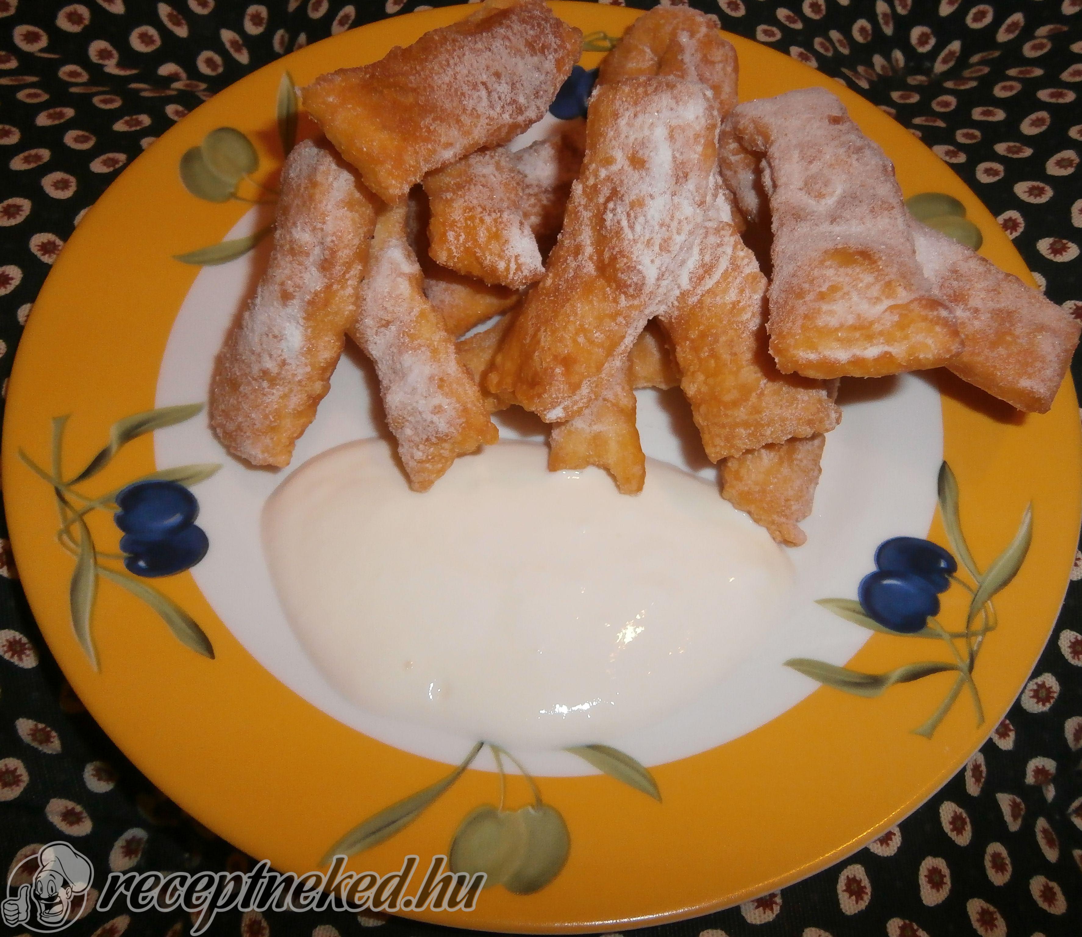 A tésztát forró olajban kisütjük, majd porcukorral megszórva tálaljuk.