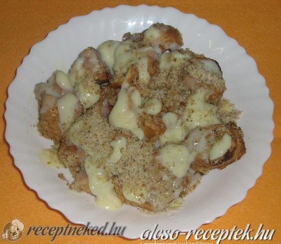 A végén az egészet leöntjük a megmaradt cukor tejjel és forró sütőben 180 fokon, kb. 15 perc alatt ropogósra sütjük.