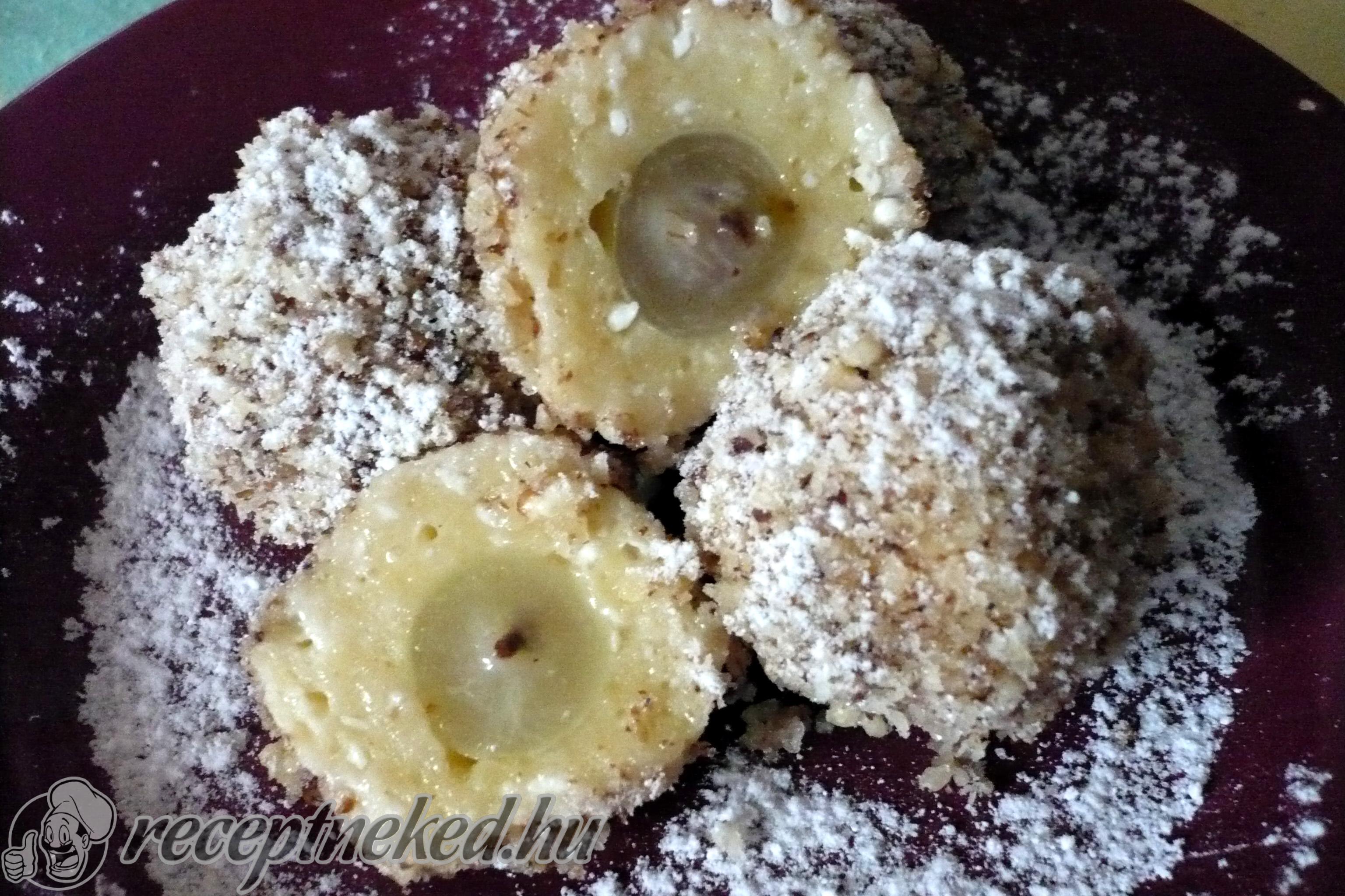 A ricottás masszából formáljunk gombócokat és hempergessük meg a diós morzsás keverékben.