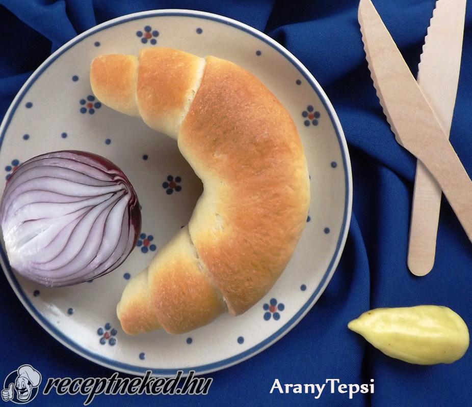 Vagy a háromszög alakúra nyújtott tésztát félbe hajthatjuk hosszában, majd feltekerjük és egy bagett sütőre sorakoztatjuk.