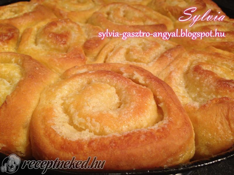 A tésztatekercseket nem túl szorosan a formába tesszük. (Nekem 12 darab tekercs lett belőle.) A formában még kelni hagyjuk kb. 15 percet, majd 180 fokon (alsó rácson kell sütni, mert az alja sül meg nehezebben) sütni kezdjük.