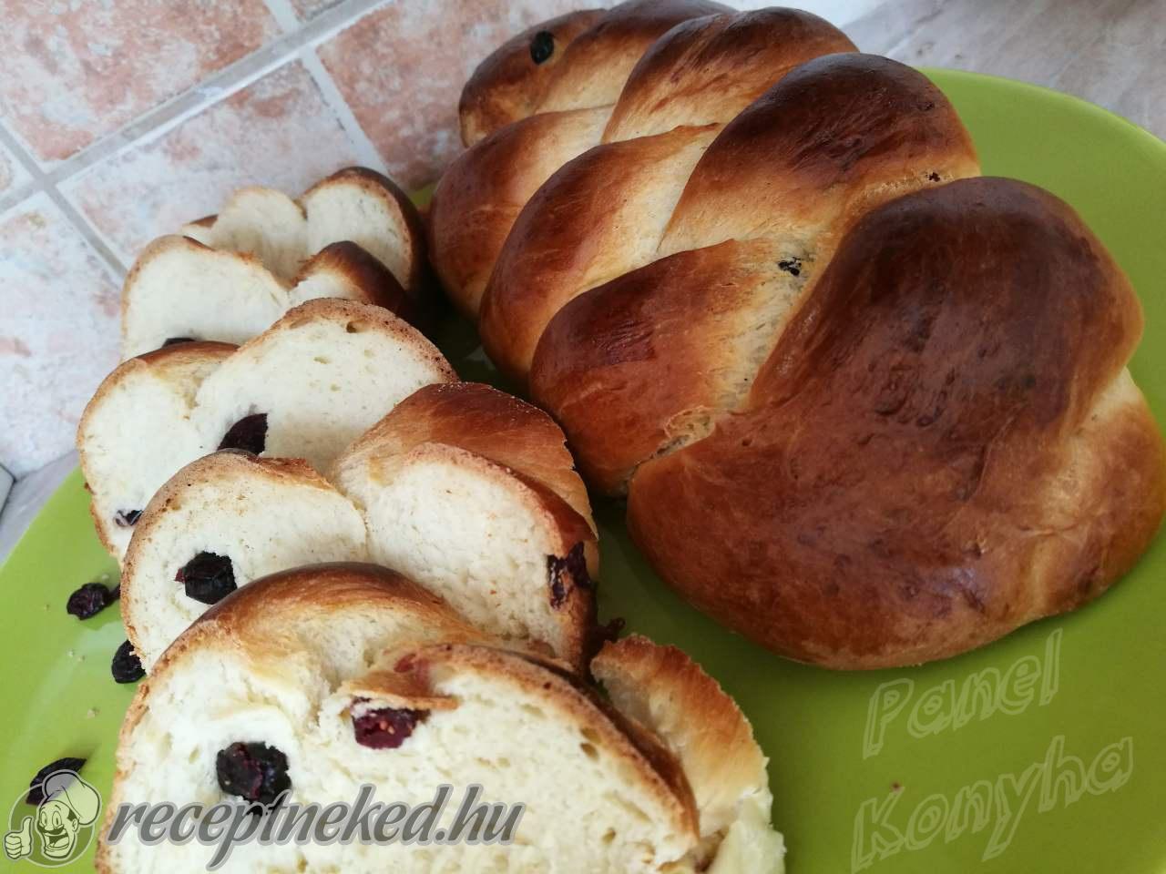 Ha a kétszeresére kelt a tészta, akkor lisztezett deszkára borítjuk. Háromfelé osztjuk, hármas fonással megfonjuk. Fonás előtt a darabokat jól meglisztezzük, akkor foszlósabb lesz.