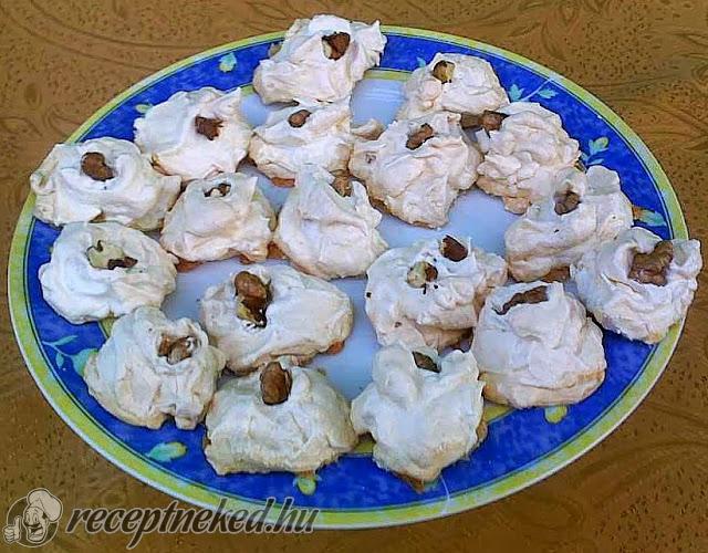 Egy tepsit kibélelünk sütőpapírral, majd a tojáshabot habzsákba töltjük. A zsák segítségével egymástól kicsit távolabb kisebb halmokat nyomunk.