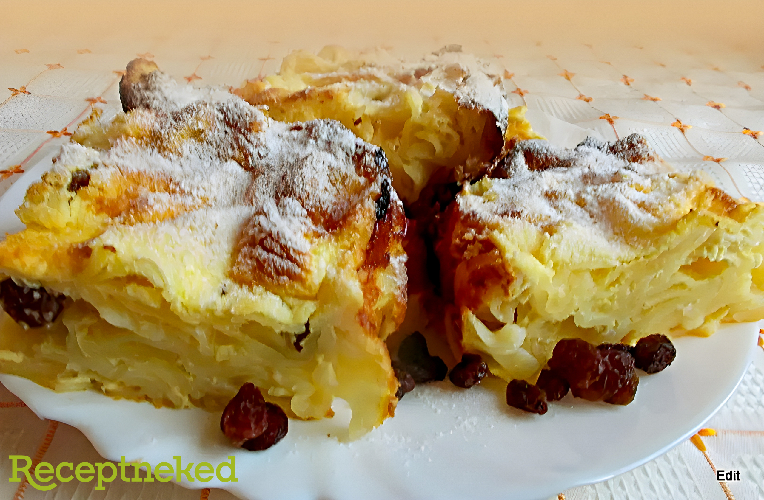 A tejes-tojásos keveréket a tésztára öntjük és 180 fokon addig sütjük, amíg a tészta beissza a nedvességet és megpuhul.