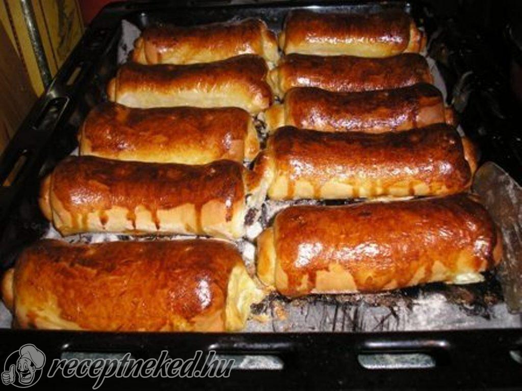 3-4 mm vastagra nyújtjuk a tésztákat, nagyjából téglalap alakúra, majd az ugyanannyi súlyú tölteléket rákenjük egyenletesen és feltekerjük.